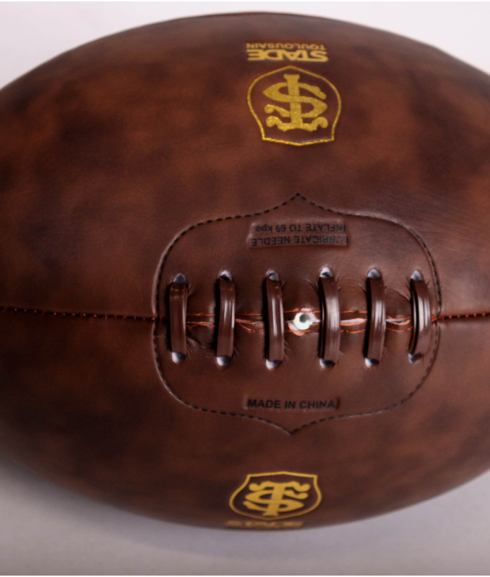 Découvrez leballon en cuir vintageofficiel du Stade Toulousain idéal pour uncadeau élégant et de qualité.Taille: 5Très résistant, toucher de balle agréable grâce à son design.Idéal pour la décoration.